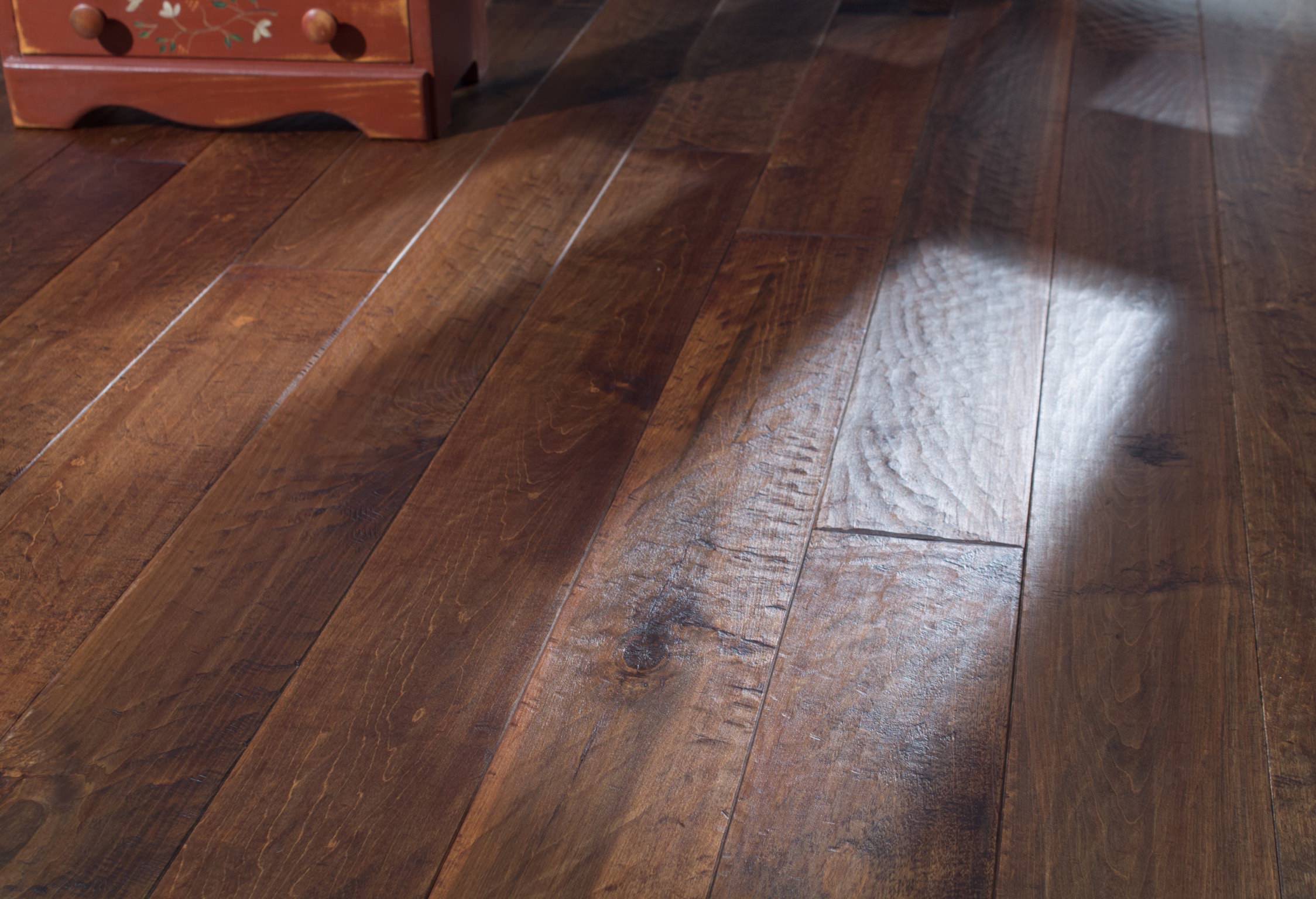 Shown here is fresh cherry in our Morgan floor. The color will darken as it matures over time.