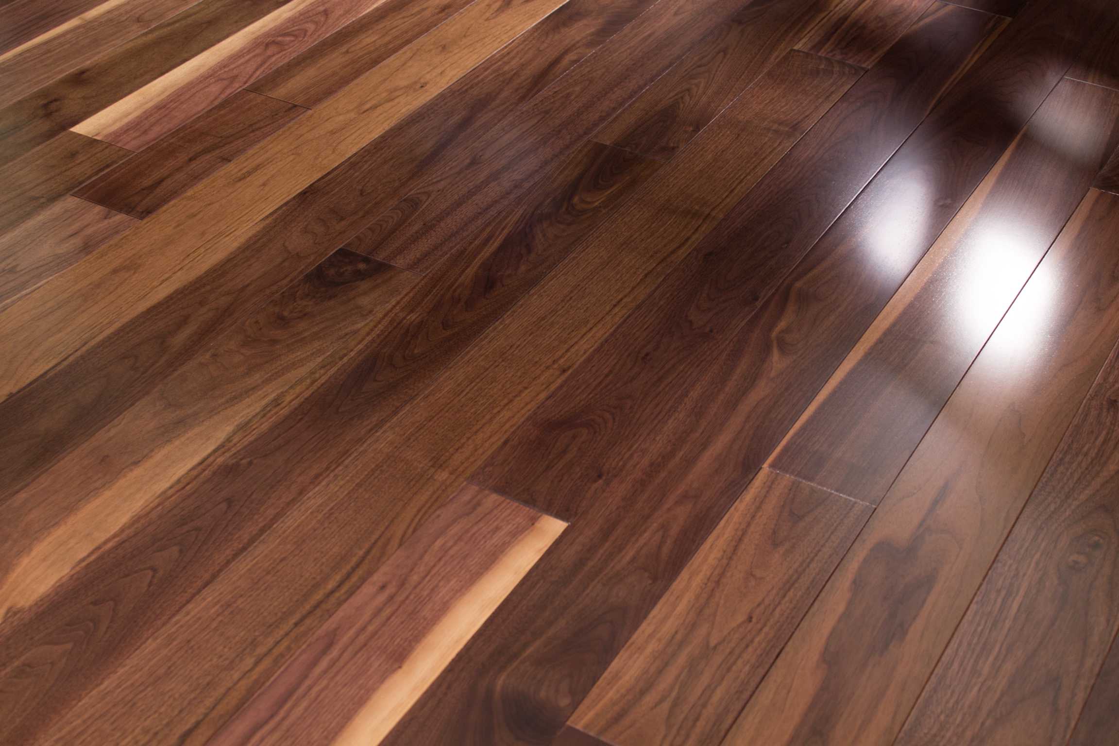 From a purely aesthetic standpoint, walnut is in a class of its own. It has a relatively straight grain with a rich, dark colored heartwood. It is one of the more stable woods used for flooring and resists temperature and humidity fluctuations, but it is quite a bit softer than red oak. Its look and workability make it a preferred species among craftsmen.
